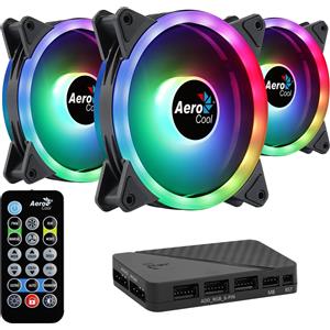 Aerocool Duo 12 Pro - Pack di 3 Ventilatori ARGB da 120mm con Hub RGB, Controllo Remoto, Pale Curve e Illuminazione LED