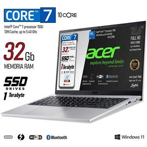 Acer NOTEBOOK ACER ASPIRE, CPU CORE 7 150U 5,4 Ghz, 32GB RAM, 1TB SSD, 15.6 FHD, W11