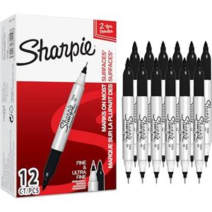Sharpie Twin Tip Marcatore Permanente Doppia Punta Conica Nero 12 pz - 0,5 mm e 1 mm, Resistente all'Acqua e alla Luce