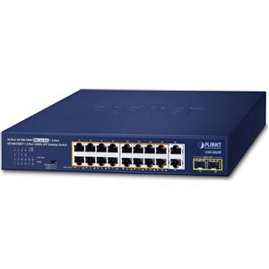 PLANET GSD-2022P Switch di rete 16-Port 10/100/1000T Non gestito Gigabit Ethernet con supporto Power over Ethernet (PoE) 802.3at Blu