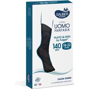 Sauber Calza Uomo Fantasia Spiga Nero 140 Denari Q-Skin Compressione 18-22 mmHg Taglia S/M