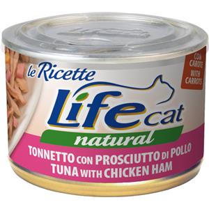 Life Cat Cibo Umido per Gatti - Tonno con Prosciutto di Pollo e Carote 150 gr
