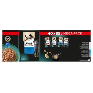 SHEBA Sauce Collection Bustine di salsa ai sapori di pesce 40 x 85g con salmone, pesce bianco, tonno, merluzzo
