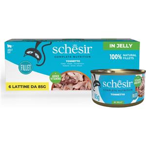 Schesir Cibo Umido per Gatti Tonnetto in Gelatina - Multipack 6x85g, 100% Naturale, Senza Coloranti e Conservanti
