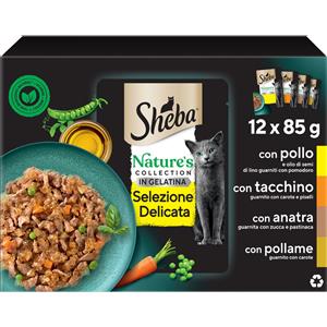 Sheba Nature's Collection Selezione Delicata in Gelatina - Alimento Umido Completo per Gatti Adulti - 12 Bustine da 85 Gr con Ingredienti Naturali
