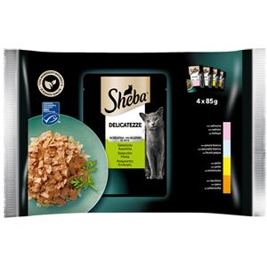 Sheba Delicatezze in Gelatina per Gatti - Selezione Assortita di Carne e Pesce, 4 Bustine da 85 g