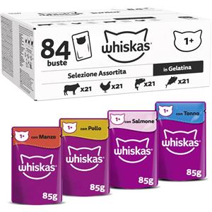 Whiskas Cibo Umido per Gatti Selezione Assortita in Gelatina, 84 Bustine da 85g, Completo e Bilanciato per Gatti Adulti