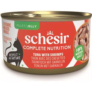Schesir Cibo Umido per Gatti - Tonnetto con Gamberetti in Filetti e Gelatina, 100% Naturale, Confezione da 6 x 85 g