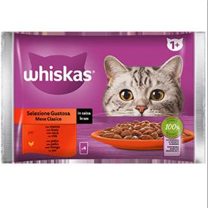 Whiskas Cibo Umido per Gatti Selezione Gustosa in Salsa - 4 Bustine da 85g con Bocconcini Irregolari e Ingredienti di Alta Qualità