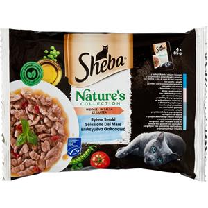 Sheba Nature's Collection Selezione del Mare in Salsa - Alimento Umido Completo per Gatti Adulti, 4 Bustine da 85g con Tonno, Salmone e Ingredienti Naturali