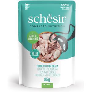 Schesir Alimento Umido Completo per Gatti Adulti - Tonnetto con Orata in Gelatina - 12x85g - Ingredienti 100% Naturali