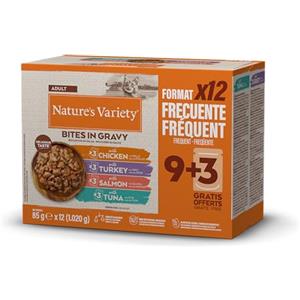 Nature's Variety Bites in Salsa - Cibo umido per gatti, Mix Pollo, Salmone, Tacchino, Tonno, 12 x 85 g