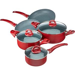 Tognana Rock in Red - Batteria di pentole e padelle 8 Pezzi in Alluminio con Rivestimento Antiaderente e Adatta a Induzione