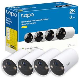 Tapo C410 Telecamera Senza Fili 2K 3MP con Batteria fino a 180 Giorni, Visione Notturna a Colori e Rilevamento del Movimento, IP65, 4pz