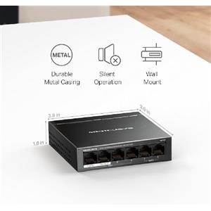 MERCUSYS Switch Desktop 6 Porte 10/100 Mbps con 4 Porte PoE - Potenza Fino a 30 W per Porta