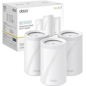 TP-Link WiFi 7 Deco BE65(3-pack) Router Mesh WiFi, BE9214Mbps Tri-Band, Canali 320 MHz, Porta Ethernet da 2,5 Gbps, Senza Precedenti, Alexa, Funziona con Qualsiasi ISP e Modem, 3 Pezzi