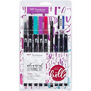 Tombow LS-ADV Set Calligrafia - 10 Marcatori Fine/Medio in Nero, Blu, Rosso e Viola
