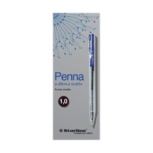 Starline Penna A Sfera A Scatto Blu - Punta 1 Mm - Fusto Trasparente - Confezione 20 Pezzi