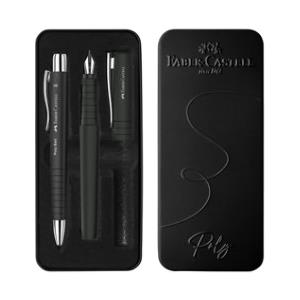 Faber-Castell Set di Scrittura Poly Pen e Penna a Sfera 0,7 mm Fusto Nero - Ergonomico e Ideale per Appunti