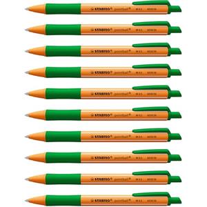 Stabilo pointball Penna a sfera Verde Ecosostenibile a scatto con clip - Fusto in plastica riciclata - Confezione da 10