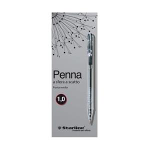Starline Penna a sfera a scatto 1,0mm nera - Fusto trasparente - Confezione da 20 pezzi