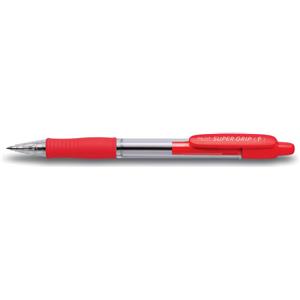 Pilot Penna a sfera a scatto Supergrip - Punta Media 1 mm - Colore Rosso - Fusto Trasparente con Grip in Gomma