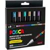 Uni Posca PC5M - Marcatore a Tempera Punta Media 8 Colori Metal Assortiti