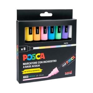 Uni Mitsubishi Marcatore a Tempera Punta Media 1,8-2,5 mm - Confezione da 8 Colori Assortiti Pastello