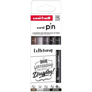 Uni-Ball Fineliner Lettering - Set di 12 e 5 pezzi con inchiostro pigmentato resistente all'acqua e alla luce, calibro 0,8 mm