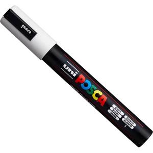 Uni Posca PC5M Marcatore a Tempera Bianco Punta Tonda Media 1,8-2,5 mm - Inchiostro Pigmentato a Base d'Acqua, Atossico e Resistente