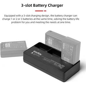 Godox VC26T Caricabatterie Triplo per Batterie VB26 - Ricarica Rapida e Portatile