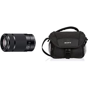 Sony SEL-55210B - Obiettivo con Zoom 55-210mm F4.5-6.3, Stabilizzatore ottico, Mirrorless APS-C, Attacco E, SEL55210B, Nero & LCS-U11 Custodia morbida per fotocamera o videocamera, Nero