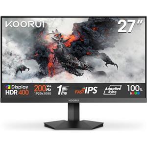 KOORUI G2711P Monitor Gaming 27 Pollici Full HD 1080p, Fast IPS, 200Hz, 1ms, HDMI, Sync Adaptive, Eye Care, Inclinazione Regolabile