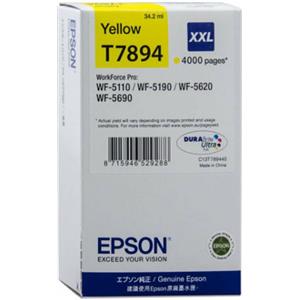 Epson Cartuccia d'Inchiostro Giallo C13T789440 T7894 XXL - 34,2ml, ~4000 Pagine, Inchiostro a Base di Pigmento