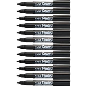 Pentel NN50 Marcatore Permanente Punta Conica Nero 12 pz - Scrittura su Metallo, Plastica, Vetro, Legno e Carta, Lunghezza Media 600 mt, Privo di Xilene e Toluene
