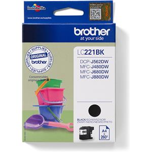 Brother LC-221BK Cartuccia d'Inchiostro Originale Nero - 1 pz, 260 Pagine, Inchiostro a Base di Pigmento