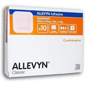 Smith & Nephew Allevyn Classic, Adhesive Dressing, cerotto per bendaggio, 10 cm x 10 cm. Confezione da 10