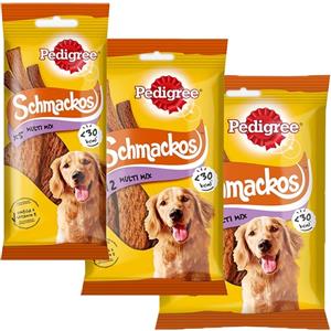 PEDIGREE Schmackos Multi Mix Snack per Cani - Strisce con Manzo, Pollo e Agnello 36g