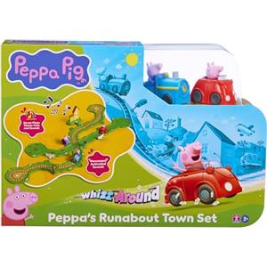 Peppa Pig Whizz Around Peppa's Runabout Town Set - Giocattoli da pista con veicoli motorizzati, trenino blu e auto rossa