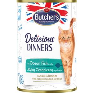 Butcher's Delicious Dinners - Cibo per gatti in pezzi con pesce di mare in gelatina, 400g