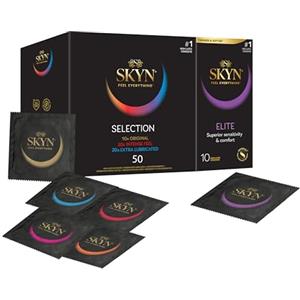 SKYN Selection (50 Pezzi) & Elite (10 Pezzi) | Preservativi senza lattice Skynfeel, Original, Intense Feel, Extra Lube, Preservativi di dimensioni normali