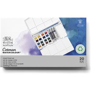 Winsor & Newton Cotman Painting Plus Set di Acquerelli - 19 pz (16 Mezzi Godet 3 Tubetti da 8 ml Pennello)
