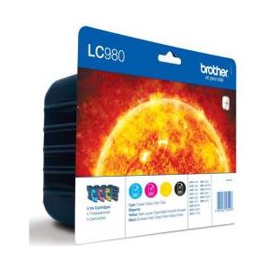 Brother LC980VALBP - Confezione da 4 Cartucce Originali Nero, Ciano, Magenta, Giallo - Resa Standard 300 Pagine (Nero) e 260 Pagine (Colore)
