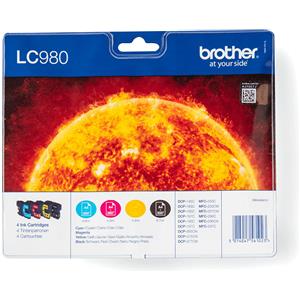 Brother LC-980VALBP Cartuccia d'Inchiostro Originale 4 pz - Nero, Ciano, Magenta, Giallo, 300 Pagine Nere e 260 Pagine Colorate