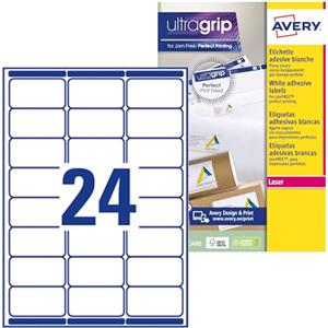 Avery L7159-100 Etichette Bianche per Indirizzi, 63,5x33,9 mm, 24 Etichette per Foglio, Adesivo Permanente, Tecnologia Ultragrip™ e JamFree™, Conf. 100 Fogli
