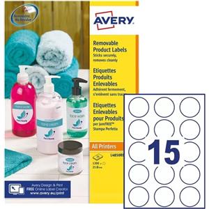 Avery Etichette Adesive Rotonde Rimovibili Ø51 mm - 15 Etichette per Foglio, Confezione da 25 Fogli, Compatibili con Stampanti Laser e Inkjet
