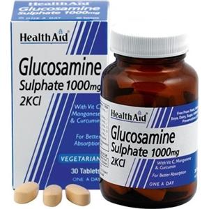 HealthAid Glucosamina Solfato 1000 mg - Integratore con Vitamina C, Manganese e Curcumina per la funzionalità articolare - 30 Compresse