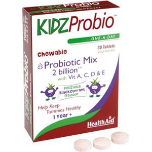 HealthAid KIDZ Probio - Integratore alimentare in compresse masticabili al gusto di Ribes nero con 2 miliardi di fermenti lattici e Vitamine A, C, D ed E