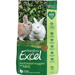 Burgess Excel Adult Rabbit - Alimento per Conigli con Pepite alla Menta, 3 kg, Ricco di Fibre e Nutrienti Essenziali