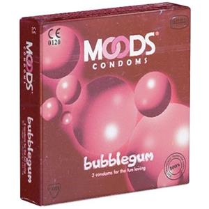 Moods Bubblegum - Preservativi al gusto di gomma da masticare, 3 pz, rosa, lubrificati